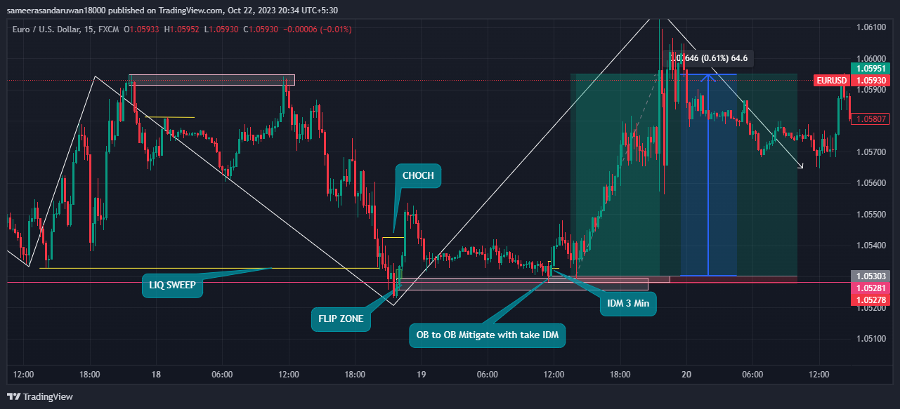 EURUSD Liquidity Sweep Entry Example with Flip (HTF POI) It's OB to OB Mitigate in the flip zone